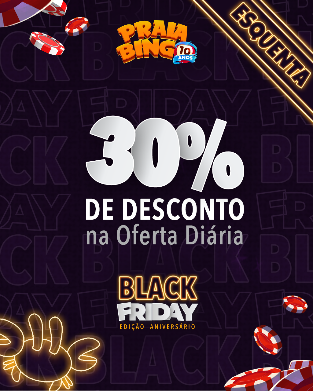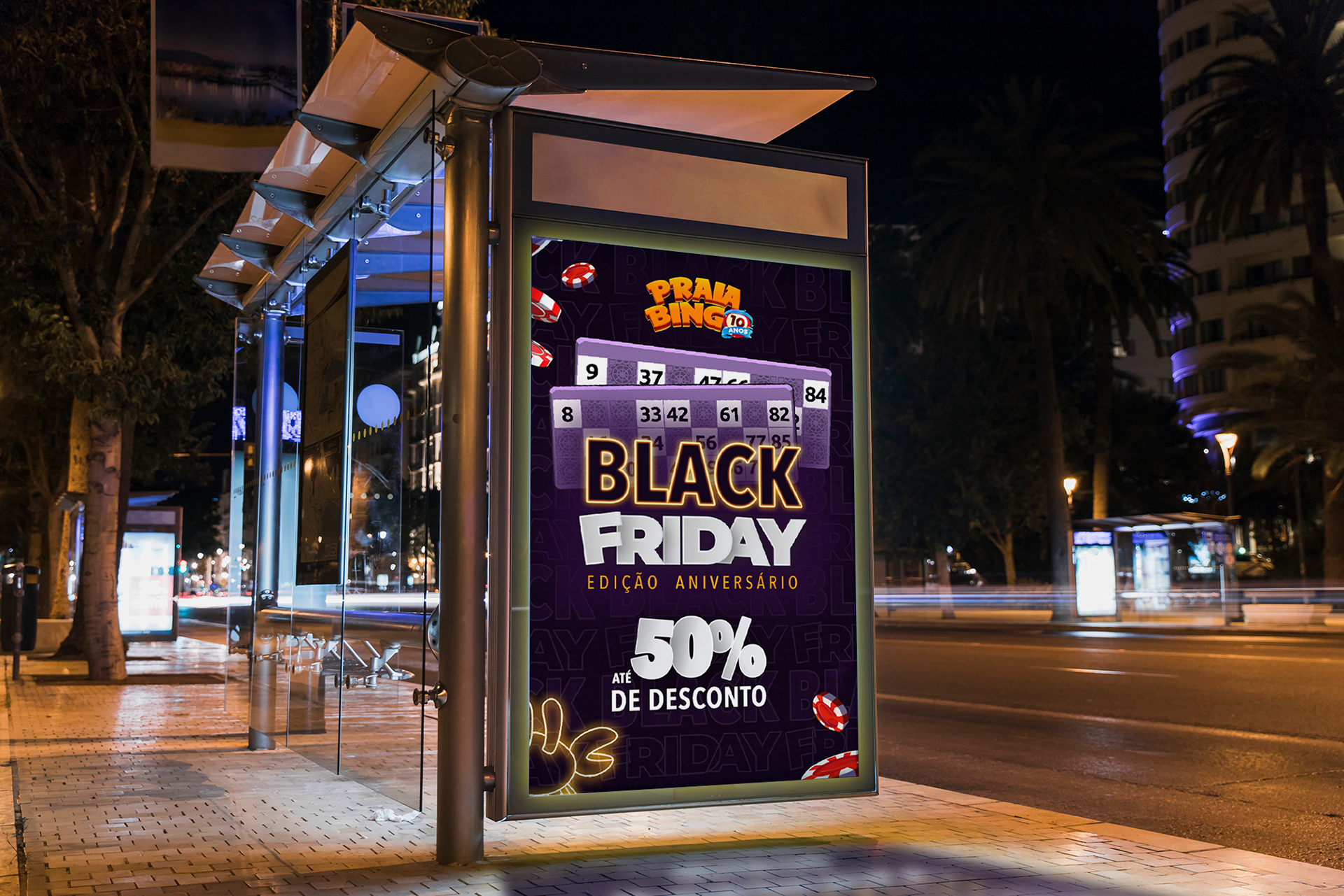 We developed a Black Friday campaign for Pipa Studios, specifically focused on their main game, Praia Bingo. In this project, we worked on every stage of the campaign, from strategic communication planning to applying the concept across all formats and promotional channels.