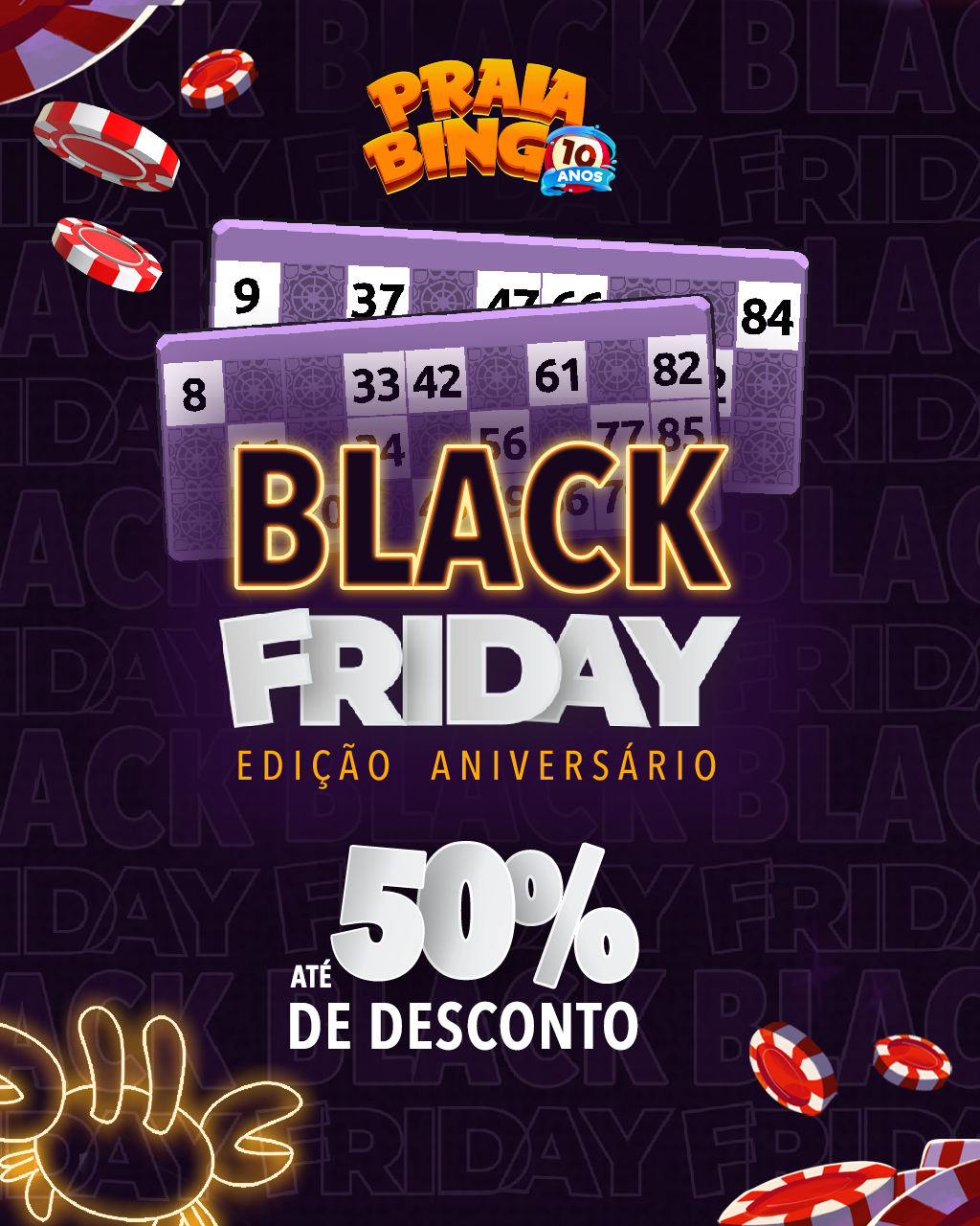 Nosso objetivo foi proporcionar uma campanha de sucesso para o Praia Bingo durante a Black Friday, com um conceito criativo e estratégico que pudesse ser aplicado de forma consistente em todos os canais de comunicação da empresa.