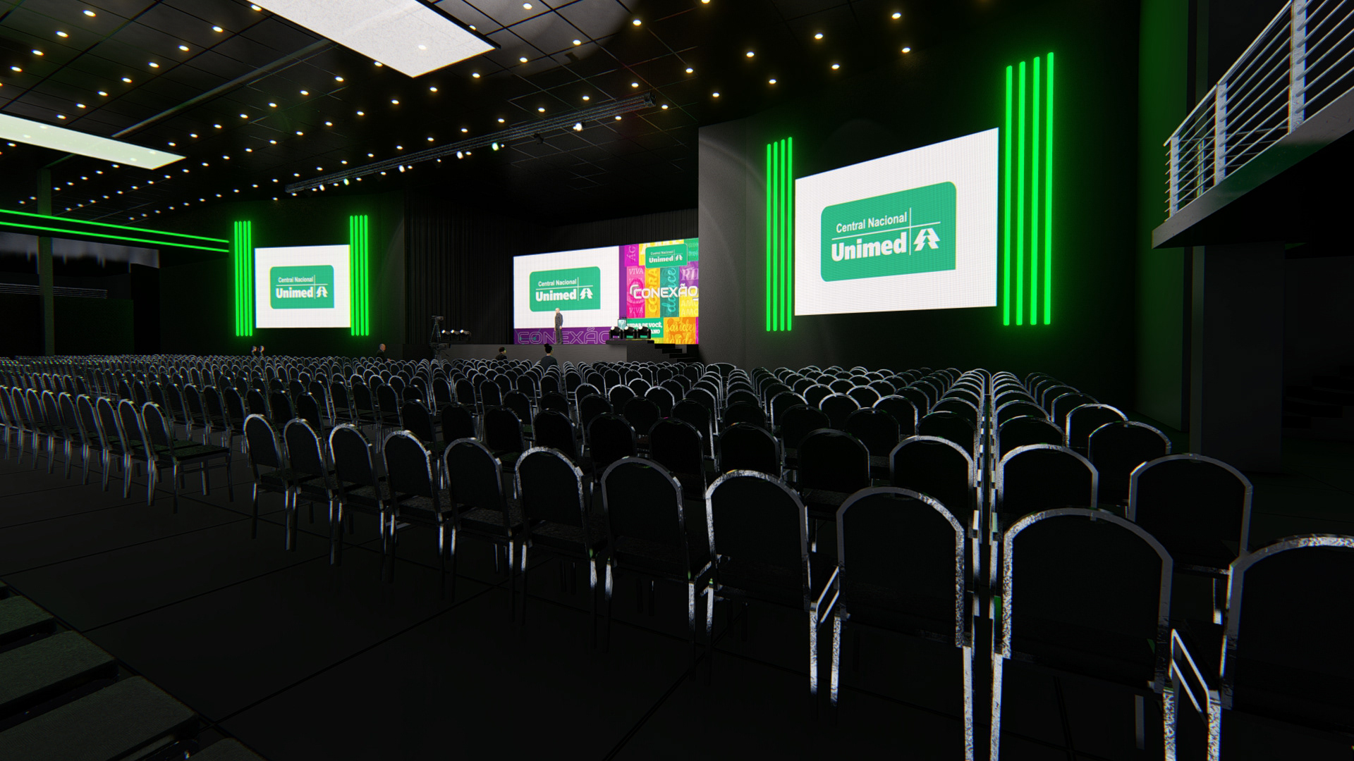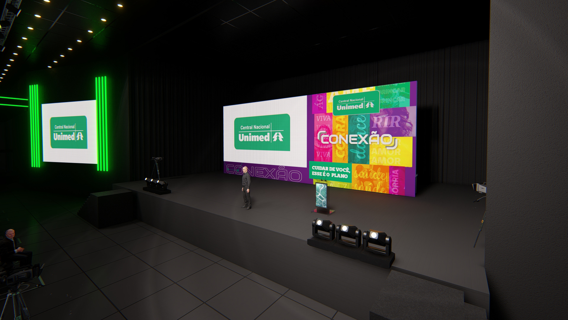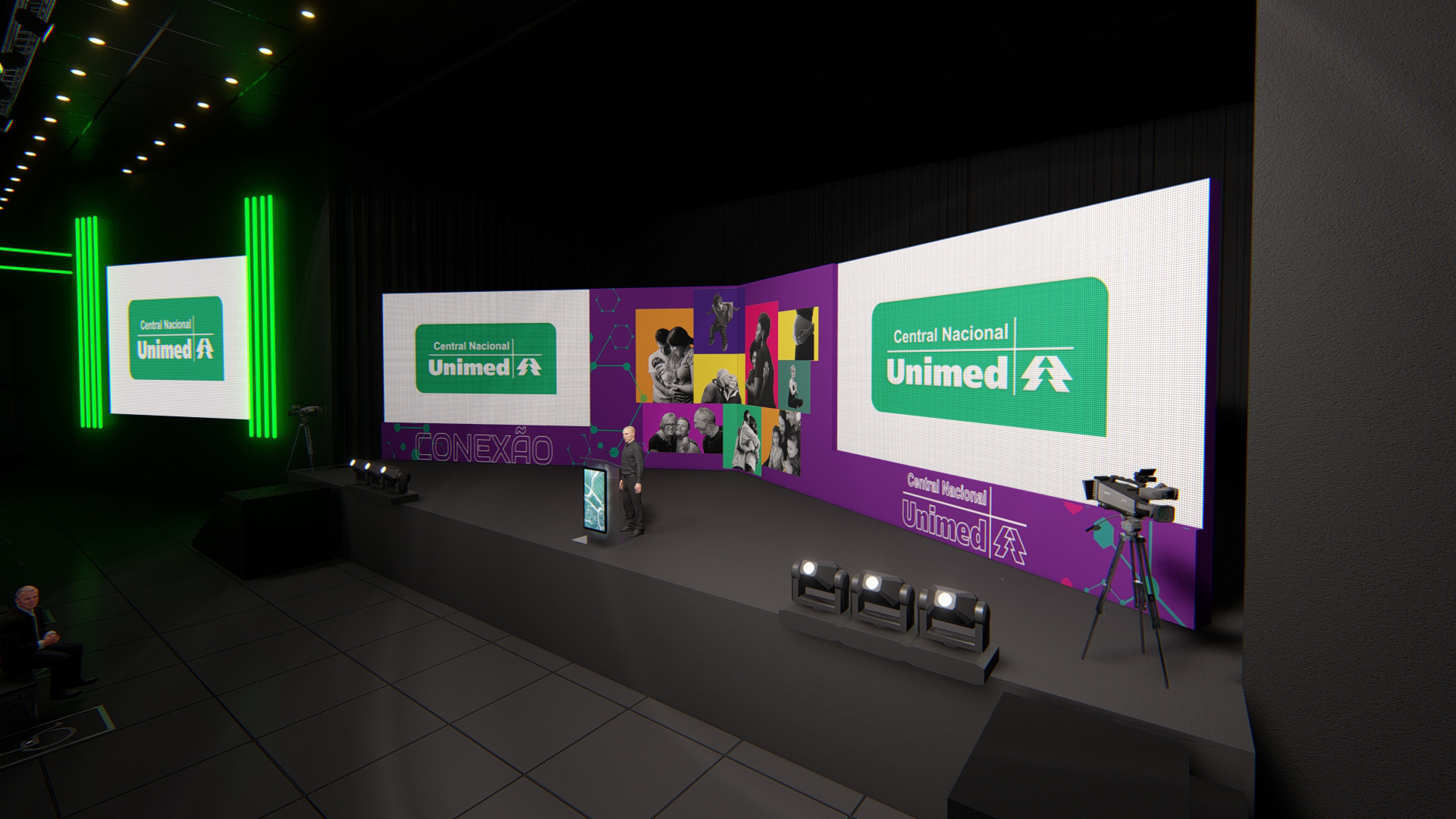 Evento para Unimed sobre tecnologia e medicina. A conexão, entre tecnologia e humanos, possibilitou uma inovação em todo o processo de trabalho da equipe Unimed. Neste projetos participei de toda a área de criação. Realizei a identidade do evento, logo, artes da cenografia e materiais promocionais. Também auxiliei no planejamento da cenografia do evento junto com as arquitetas Alessandra Sanches e Juliana Sumita, no qual realizaram os renders 3D do projeto.