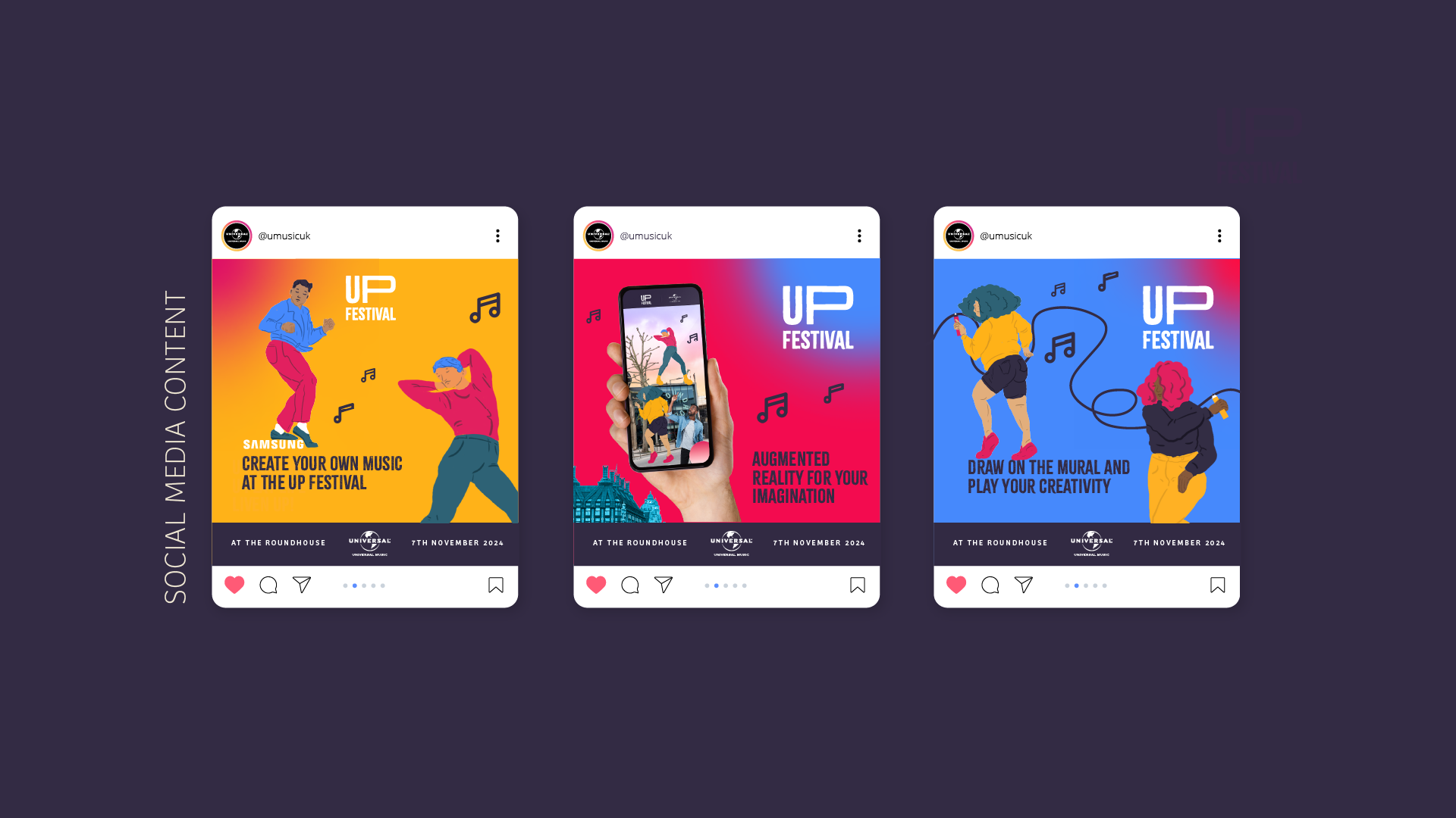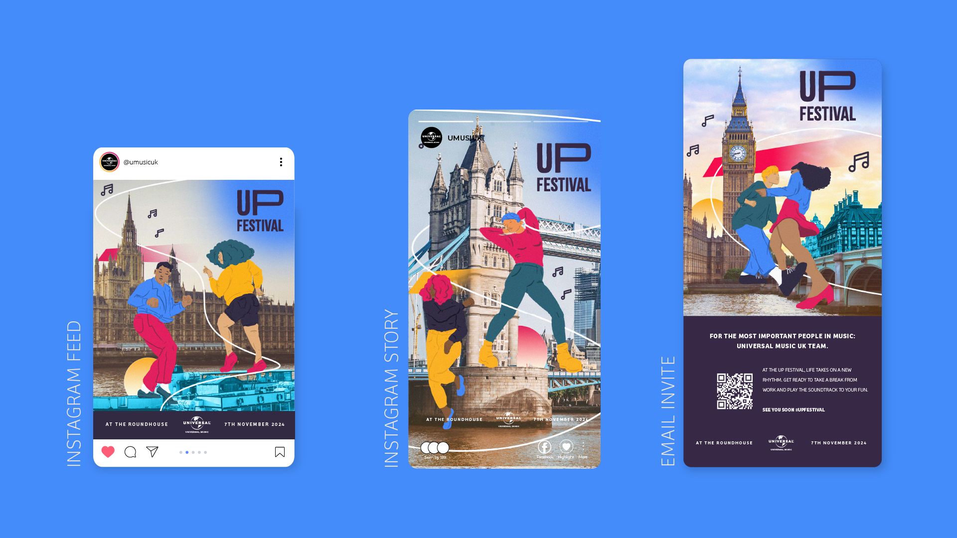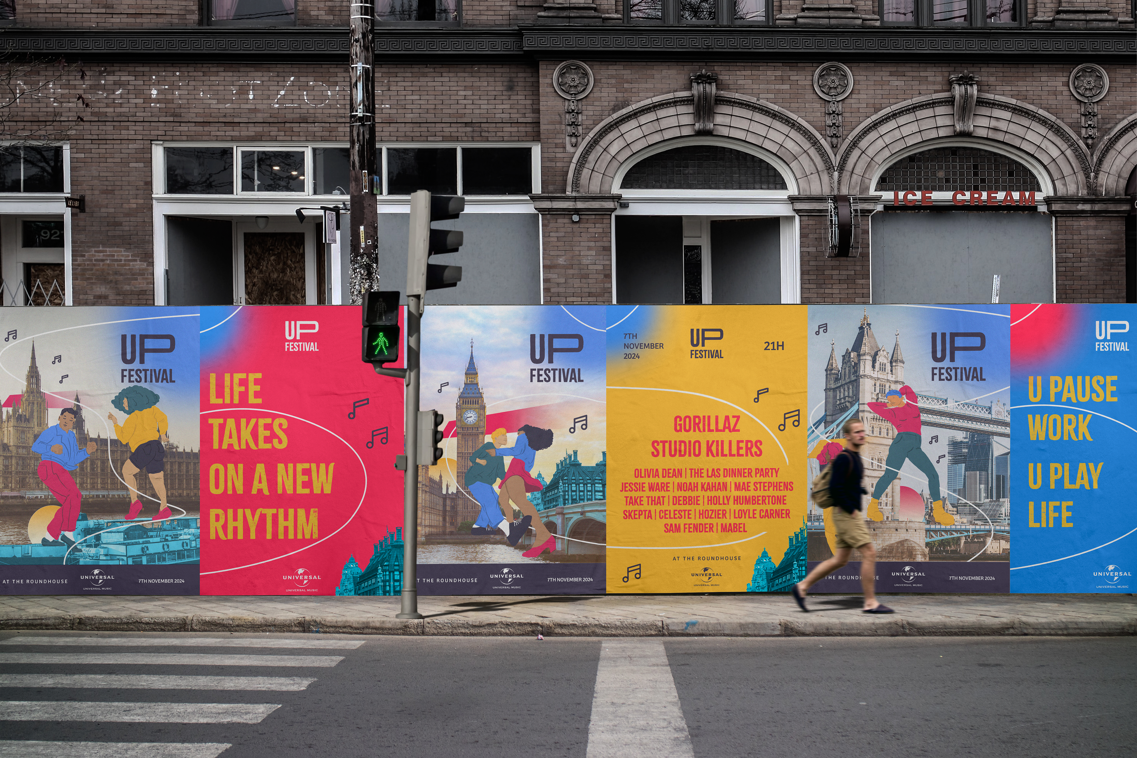 Every year “UMusic Autumn” takes place, a festival just for those who work at Universal Music in London. For the 2024 edition, the challenge is to create a new branding, name, poster, and set of promotional designs for the event that specifically speaks to and excites people working in and around music.