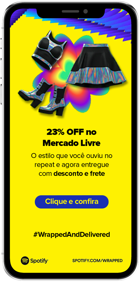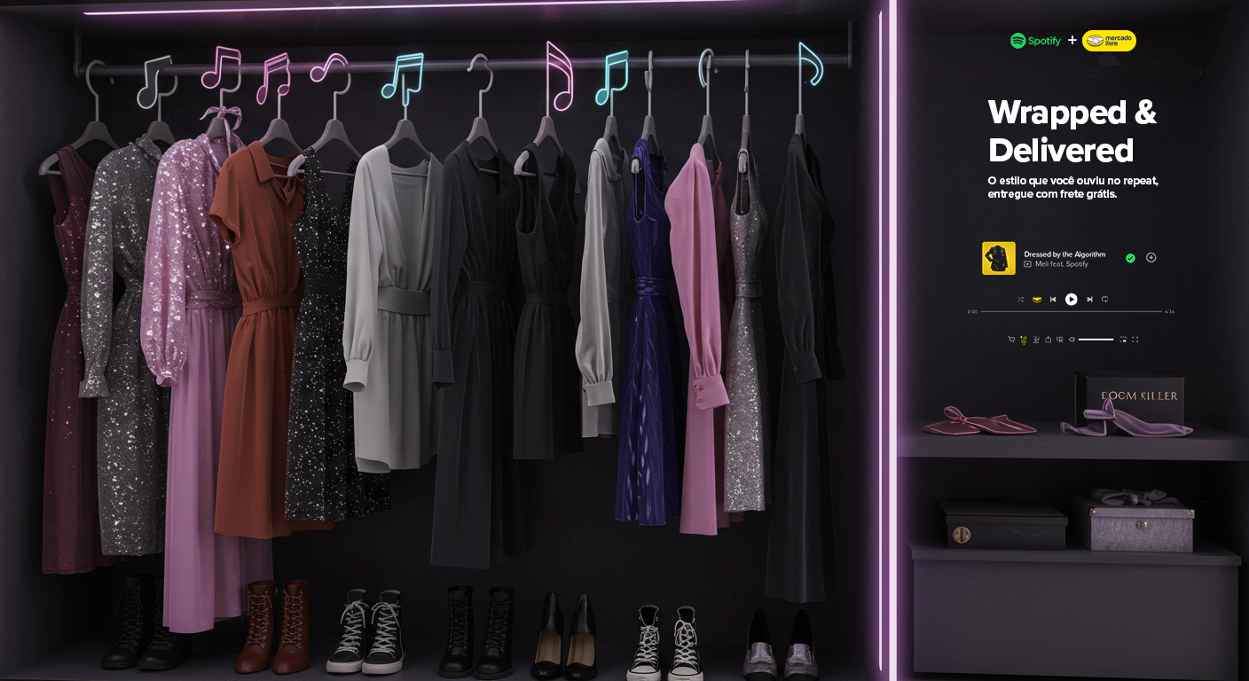 Idea: Mercado Livre, one of the largest e-commerce platforms in Latin America and the market leader in Brazil, joins Spotify Wrapped in an unprecedented partnership: turning your musical behavior into personalized fashion and style trend suggestions. Based on the artists and genres you listened to the most, we curated a fashion selection that matches your vibe.
