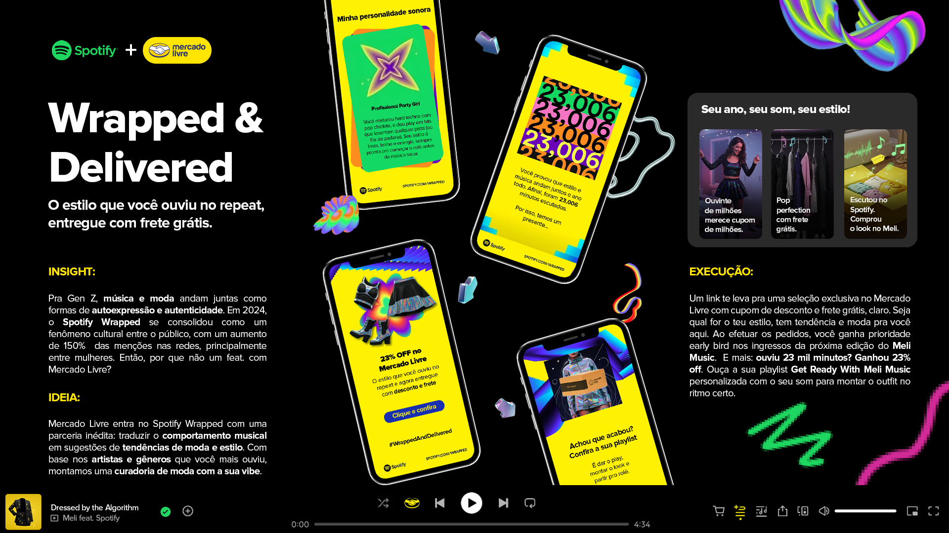 Insight: For Gen Z, music and fashion go hand in hand as forms of self-expression and authenticity. In 2024, Spotify Wrapped became a true cultural phenomenon, with a 150% increase in social media mentions, especially among women. So, why not a collab with Mercado Livre?